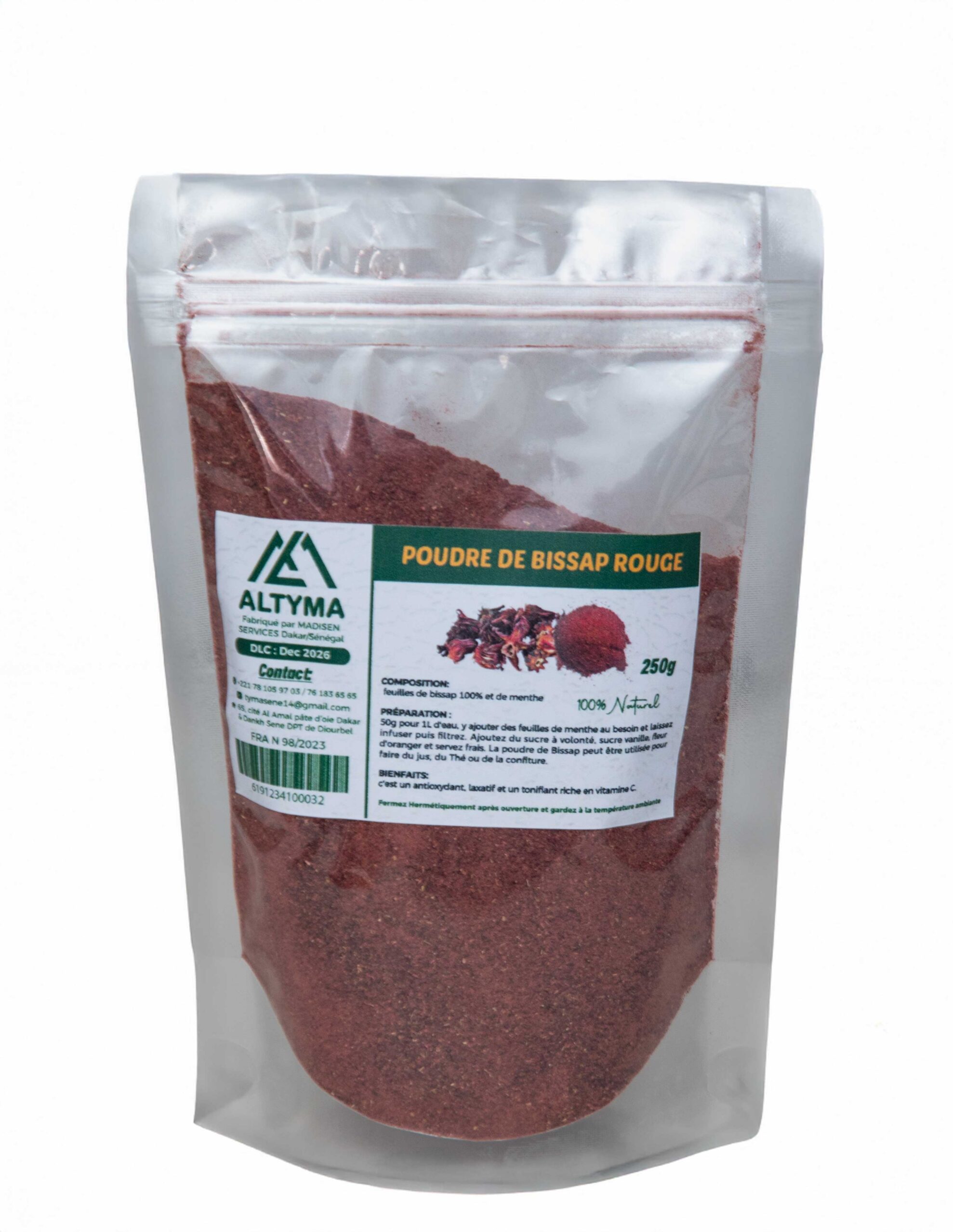 COMPOSITION: BISSAP ROUGE 100% NATUREL ET FEUILLES DE MENTHE